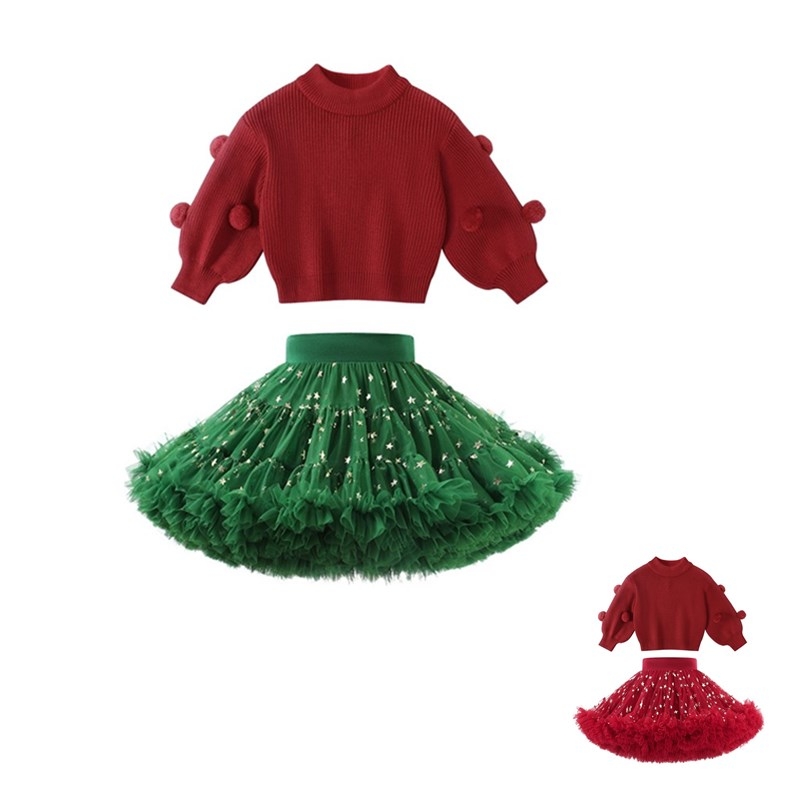 Áo Len Dài Bé Gái Màu Đỏ Cục Bông (Từ 3 - 14 tuổi), Mặc Đông - A00241