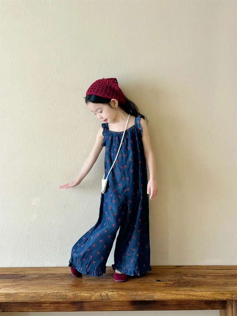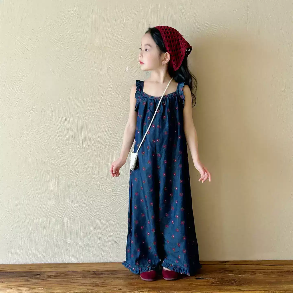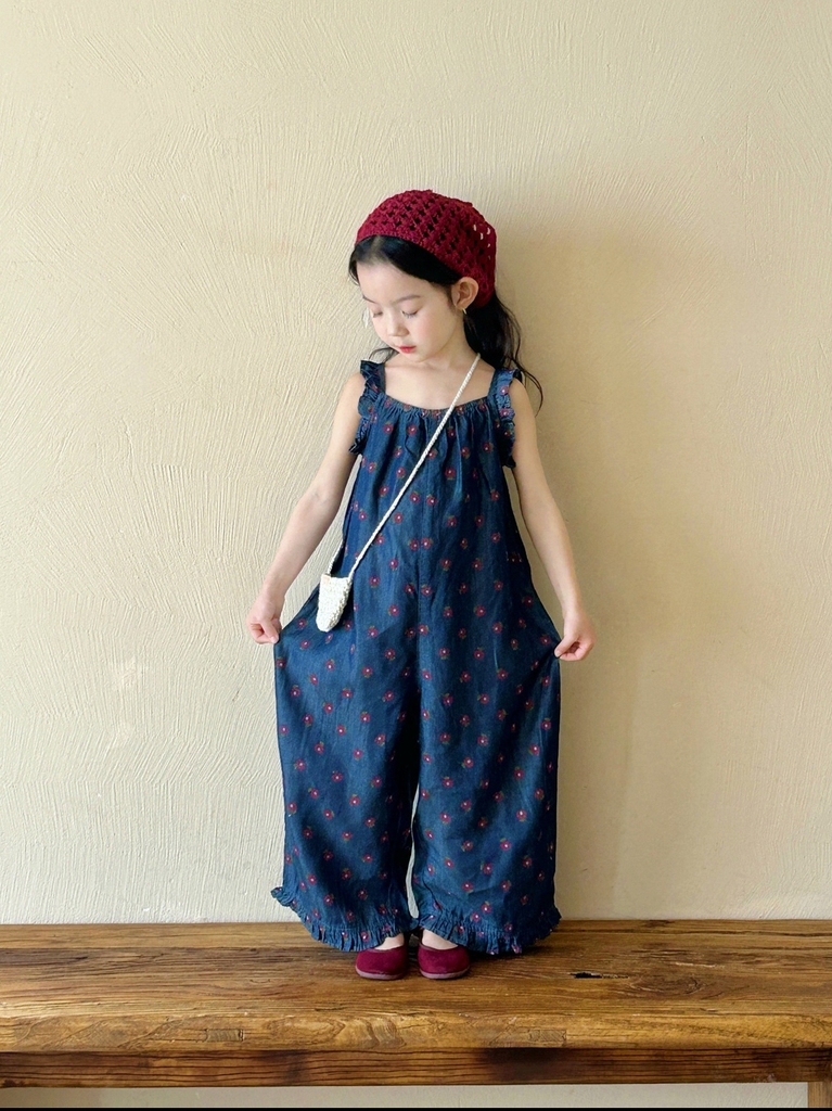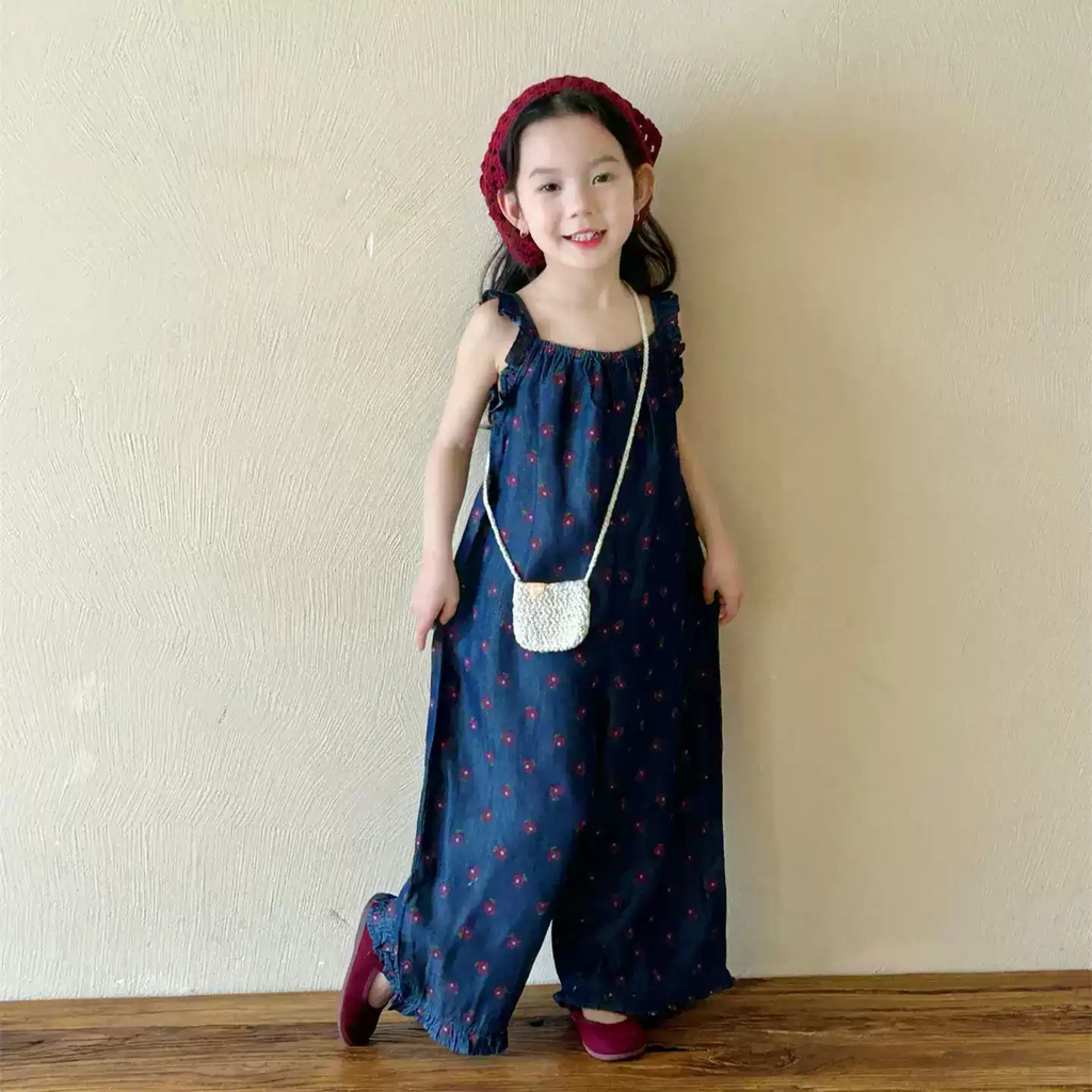 Jumpsuit Jean Dài In Hoa Màu Xanh Bé Gái (Từ 3 - 14 tuổi), Dáng Liền – B2505008