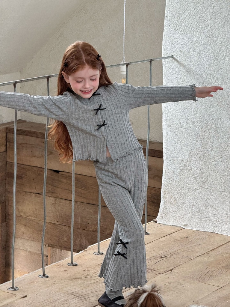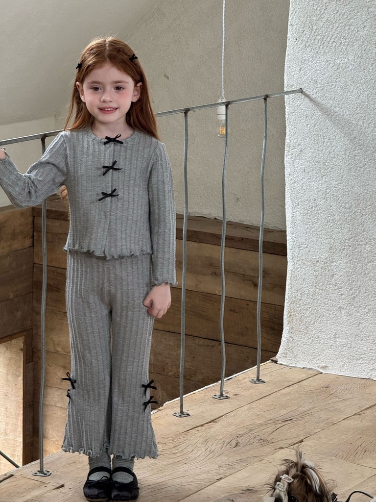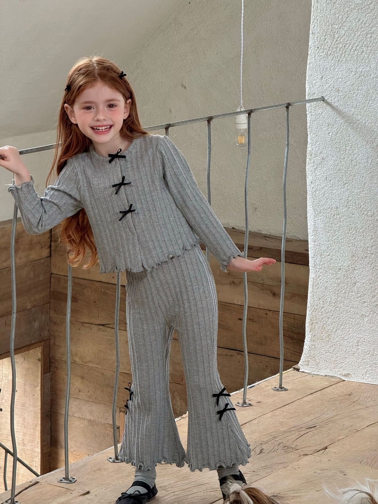Set Dài Thun Xám Nơ Đen Ota