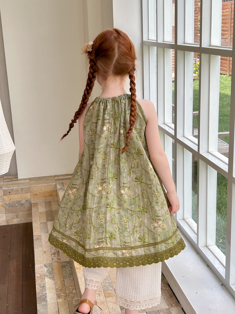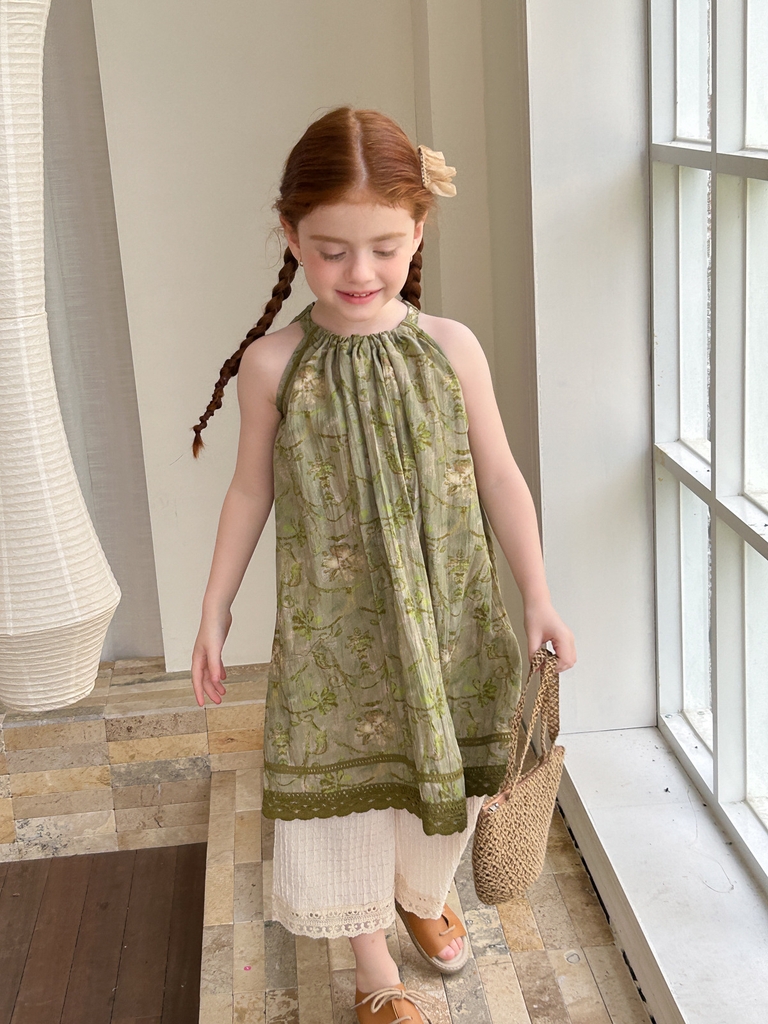 Giao hàng nhanhSET Dài Váy Hoa Xanh Quần Thun Kem