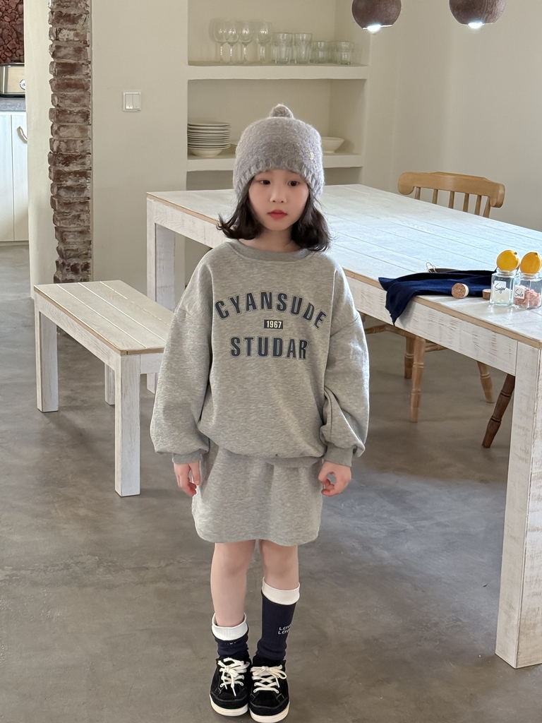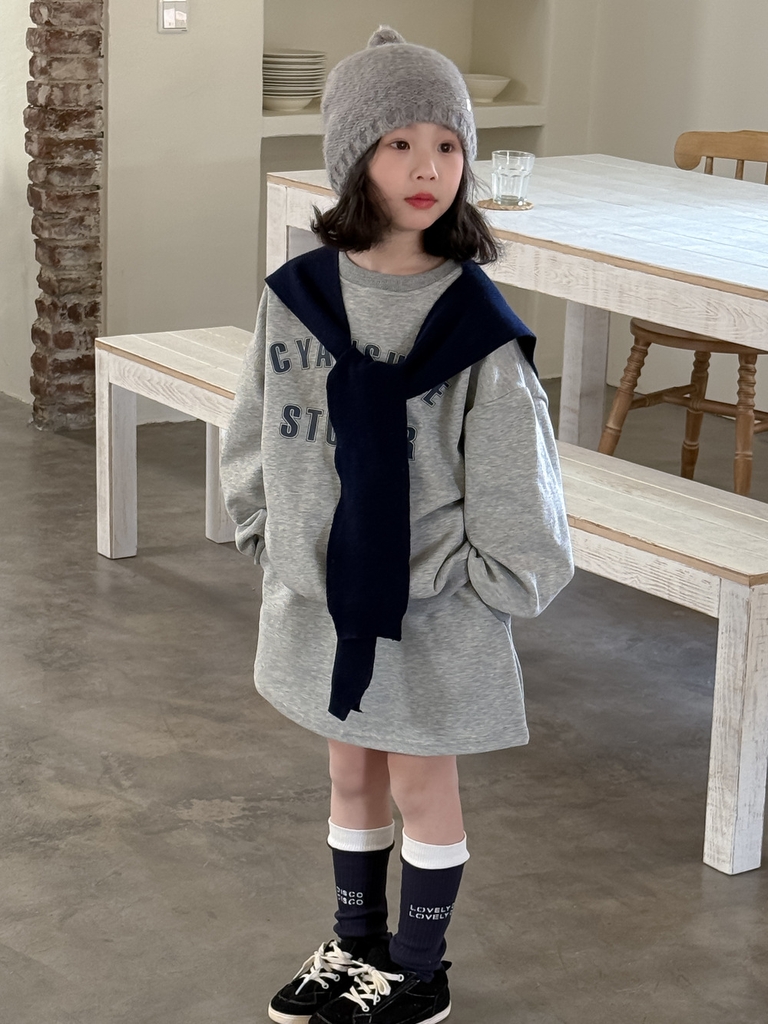 Set Ngắn Áo Váy Xám Chữ Xanh KM
