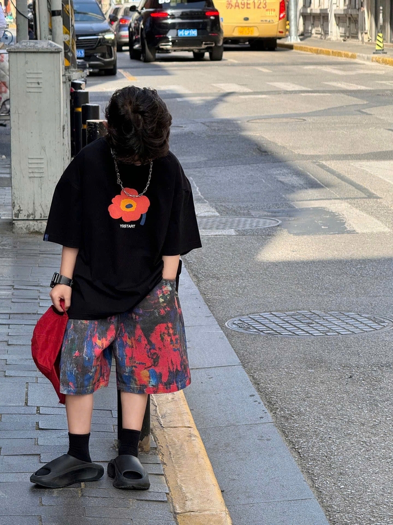 Giao hàng nhanhSET Ngắn Áo Hoa Đen Quần Màu