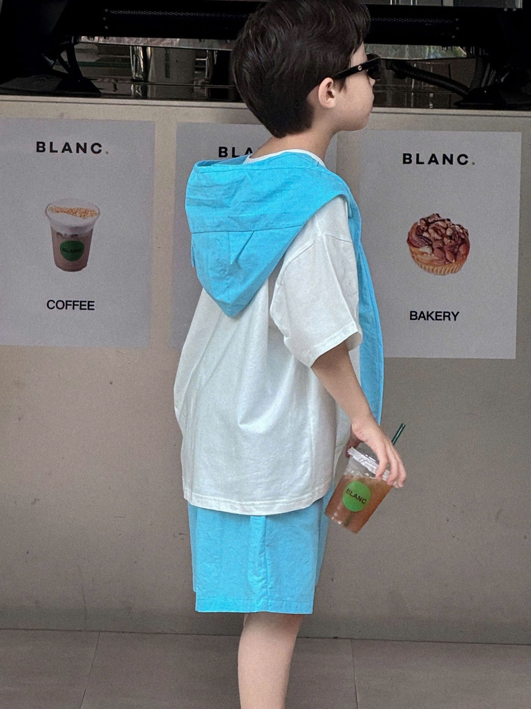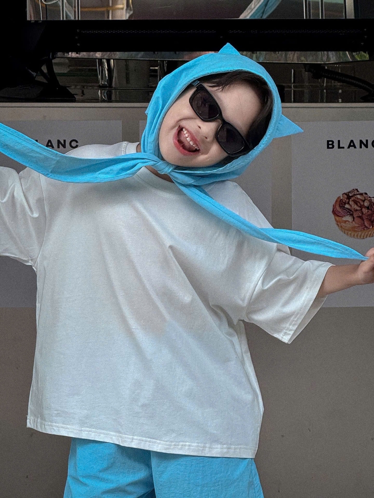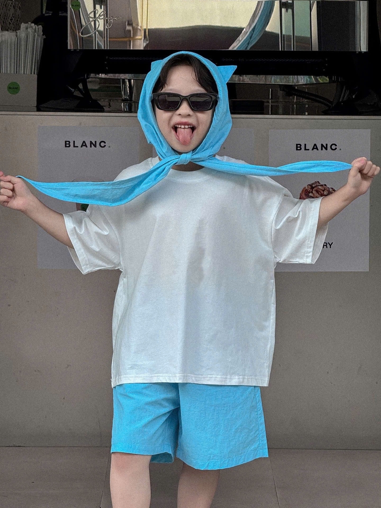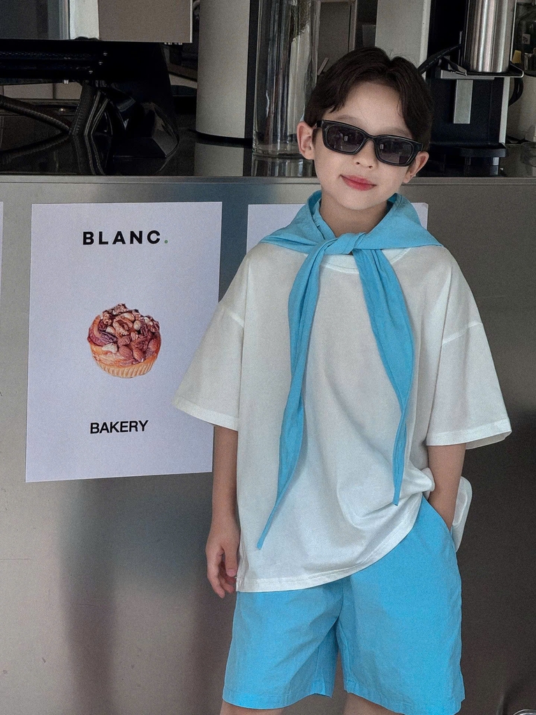 Set ngắn áo thun trắng + Quần xanh + khăn bé trai Chubee (4–13 tuổi) – Năng động, tươi tắn B2507142